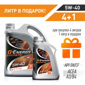 Акция 4+1!!!Моторное масло G-Energy Synthetic Active 5W40 SN/CF A3/B4, VW 502.00/505.00, Renault RN0700/0710, MB 229.3, ПАО "АВТОВАЗ" синтетическое 5л.