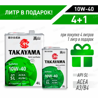 Ация 4+1!!! Моторное масло Такаяма(TAKAYAMA) 10w40 API SL/CF полусинтетическое, металл 5л.