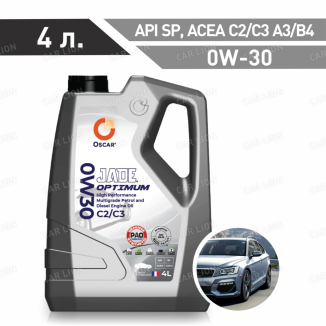Моторное масло Oscar Jade 0w30 Optimum API SP; ACEA C2/C3; A3/B4; MB 229.31/51/52; DX 2; BMWLL04; VW 504/507; RN0700/0710; PSA B71 2290/2297 синтетическое 4л.