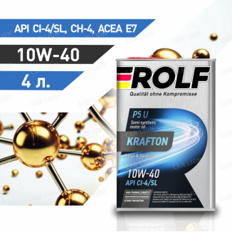 Моторное масло Рольф(ROLF) KRAFTON P5 U 10W-40 CI-4/SL,ACEA E7-12,MB-APPROVAL 228.3,VOLVO VDS-3,DEUTZ DQC lll Полусинтетическое 4л.