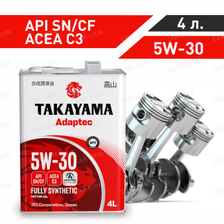 Моторное масло Такаяма(TAKAYAMA) Adaptec 5w30 ACEA C3 API SN/CF Синтетическое,металл 4л.