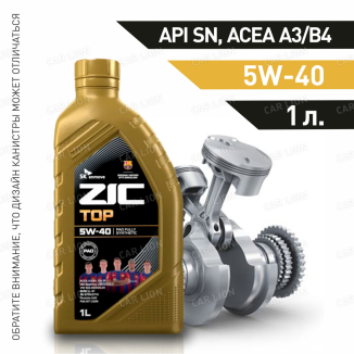 ZIC TOP 5W-40 - полностью синтетическое моторное масло для бензиновых и дизельных двигателей легковых автомобилей, включая двигатели с турбонаддувом, двигатели с прямым впрыском, дизельные (без сажевых фильтров) и гибридные двигатели. Выполняет требования API SP: дополнительная защита от преждевременного воспламенения топливной смеси LSPI, защита от износа цепи ГРМ, улучшенная топливная экономичность.