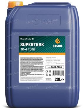 - Специальное тракторное масло SUPERTRAK TO-4 SAE 30 (20 л) EXSOIL CF CF-2, GL 4, Caterpillar TO 4, ALLISON C 4, TES 439, Komatsu KES 07.868.1, ZF TE ML