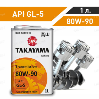 Трансмиссионное масло Такаяма(TAKAYAMA) Transmission 80w90 API GL-5 минеральное, металл 1л.