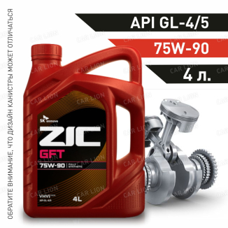 ZIC GFT 75W-90 - полностью синтетическое трансмиссионное масло для механических трансмиссий легковых автомобилей и коммерческого транспорта, требующих вязкость по SAE 75W-90, категории по API GL-4\GL-5. Предназначено для использования в коробках передач, раздаточных коробках, а так же в коробках отбора мощности и редукторах ведущих мостов, требующих применения масел как класса API GL-4, так и масел класса API GL-5.