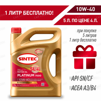 - Акция 5л по цене 4л Моторное масло SINTEC Platinum 7000 10W40 API SN/CF синтетическое 5л.