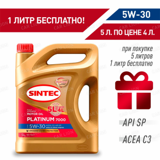 - Акция 5л по цене 4л Моторное масло SINTEC Platinum 7000 5W30 ACEA C3 API SP синтетическое 5л.