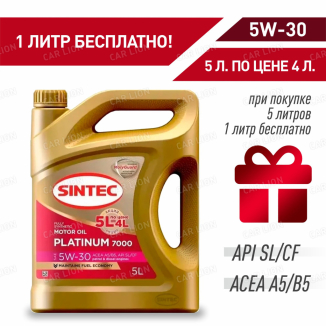- Акция 5л по цене 4л Моторное масло SINTEC Platinum 7000 SAE 5W30 ACEA A5/B5 синтетическое 5л.