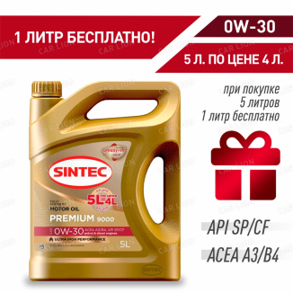 - Акция 5л по цене 4л Моторное масло SINTEC Премиум 9000 0w30 ACEA A3/B4 API SP/CF синтетическое 5л.