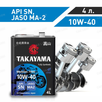 Моторное масло Такаяма(TAKAYAMA) Mototec 7000 4T 10W40 API SN JASO MA-2, Синтетическое,металл 4л.